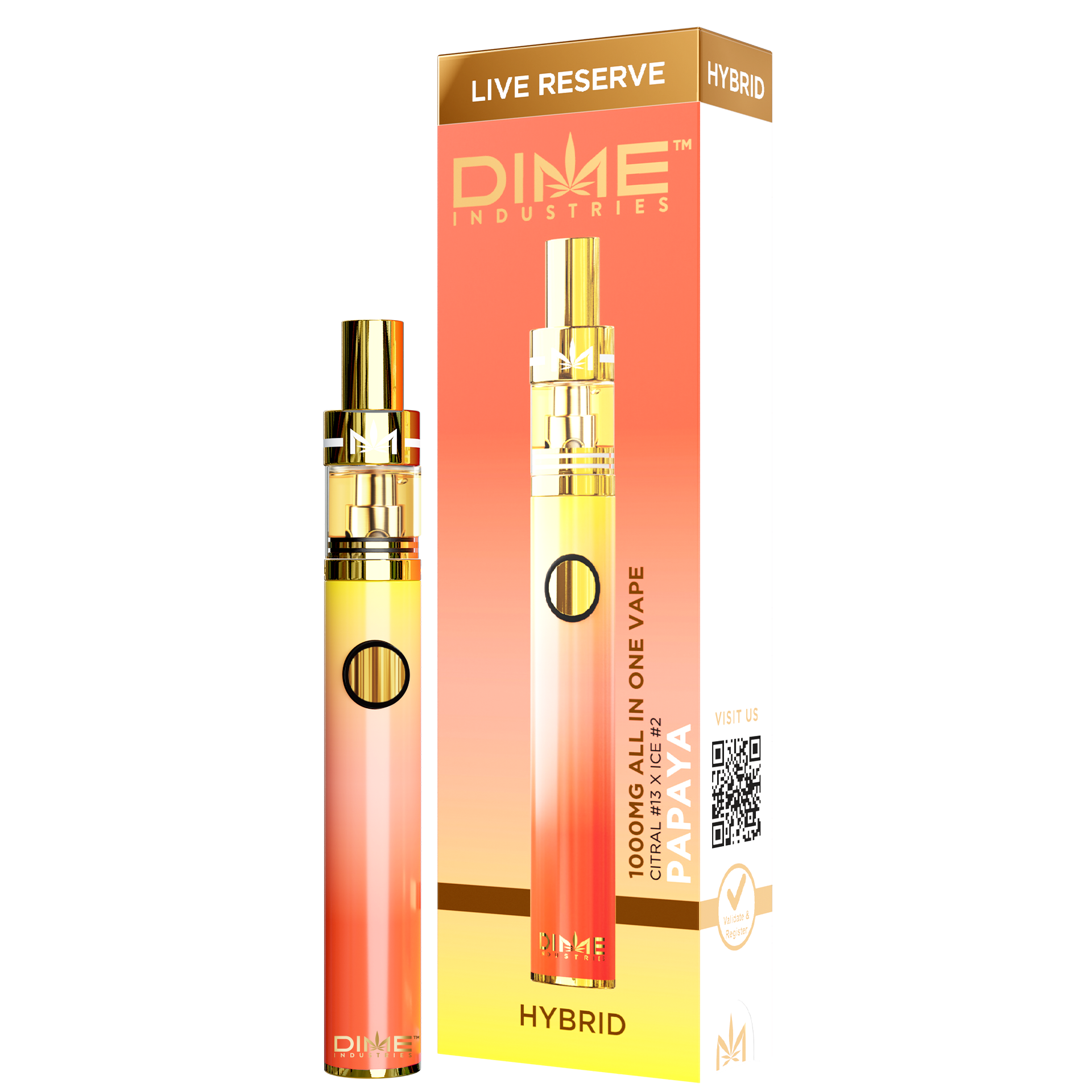 Papaya is an indica-dominant hybrid cannabis strain that is known for producing relaxation and calmness effects. Many consumers also find that this strain makes them energetic and focused. It’s spectacular taste profile emanates fruity, sweet, slightly spicy, light peppery notes resembling its delicious fruit counterpart. This Papaya Live Reserve vape will take you to a tropical paradise.