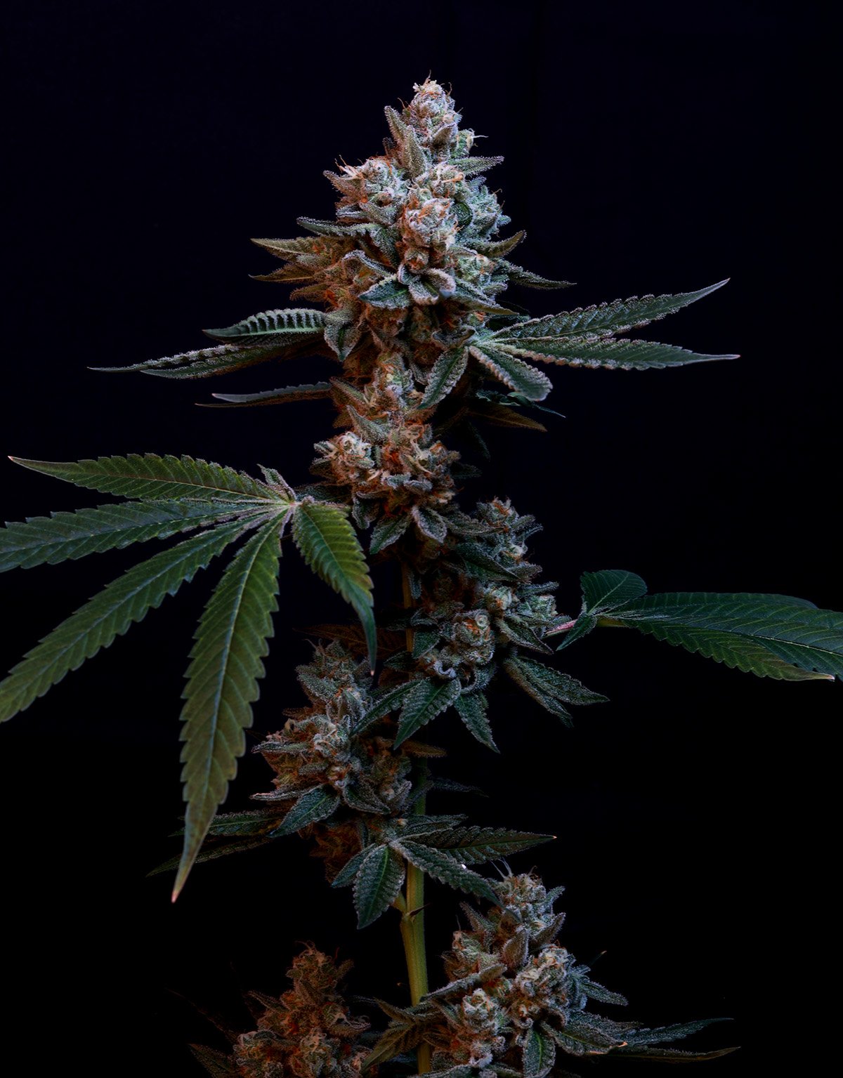 Blending the Florida-born Triangle Kush and the California-bred Mendo Purps makes a powerful Indica dominant hybrid with notes of classic OG Kush, grapes, lemons and fuel. Menage is a high yielding plant that produces a heavy coating of trichomes and dense light green buds with purple undertones. The Terpenes on this strain are “loud” and jump out of the bag. Menage checks all of the boxes of a top ranking cultivar.