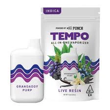 Tempo’s Granddaddy Purple Live Resin AIO sinks you into a twilight vineyard tucked in California’s rolling hills. With deep grape and berry notes, and a hint of earthy musk, each puff feels like sunset in a glass. Infused with Myrcene and Linalool, this indica-dominant vape delivers a deeply relaxing body high and a soothing mental calm, perfect for unwinding. Experience the full spectrum of cannabinoids with bold flavor and aroma that hits just like fresh flower—lush, mellow, and timeless.