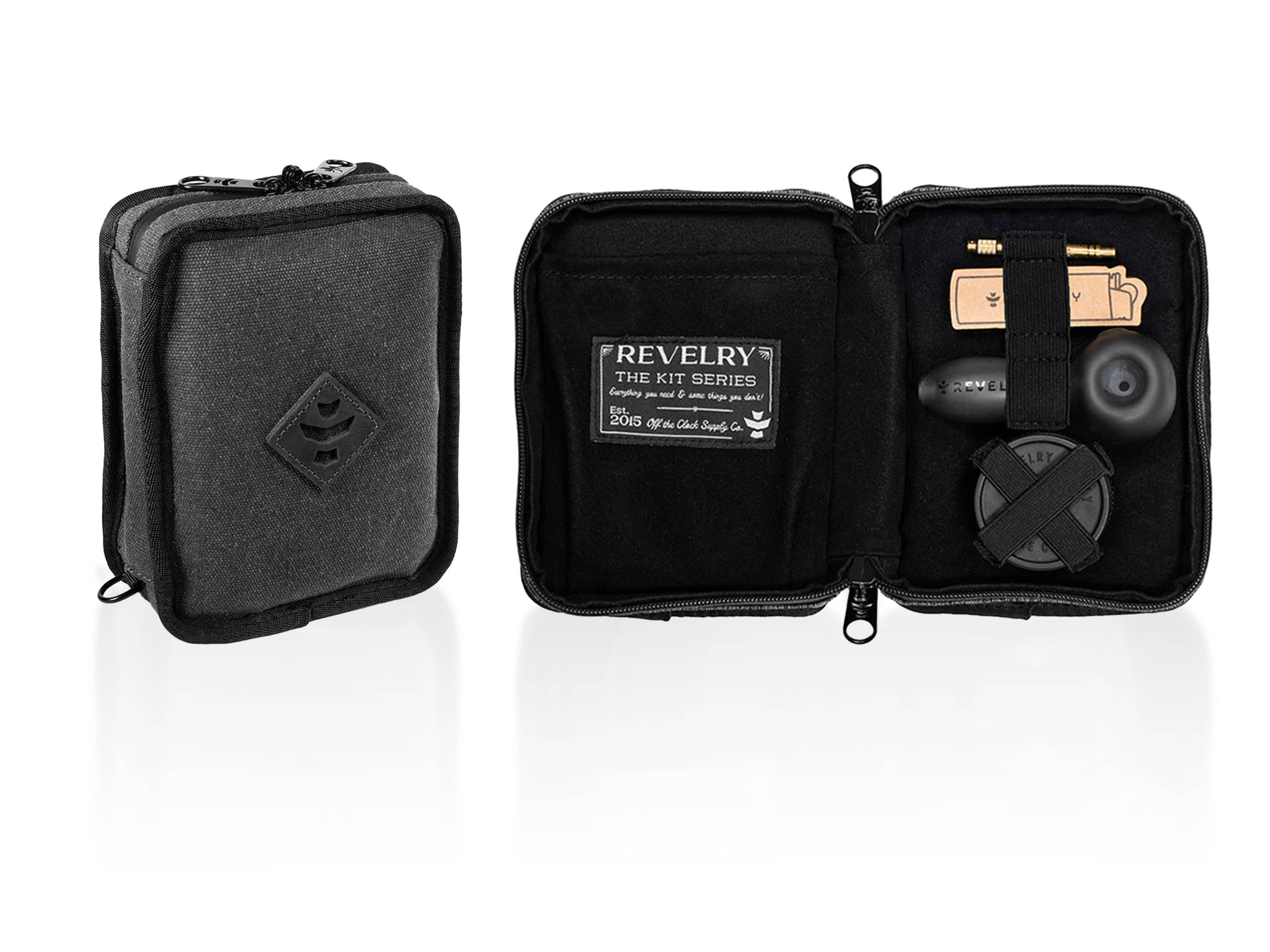 The Pipe Kit includes a glass spoon pipe, grinder, and cleaning tool inside a durable, smell-proof, water-resistant case with zippered enclosure. Available in multiple colors/patterns.